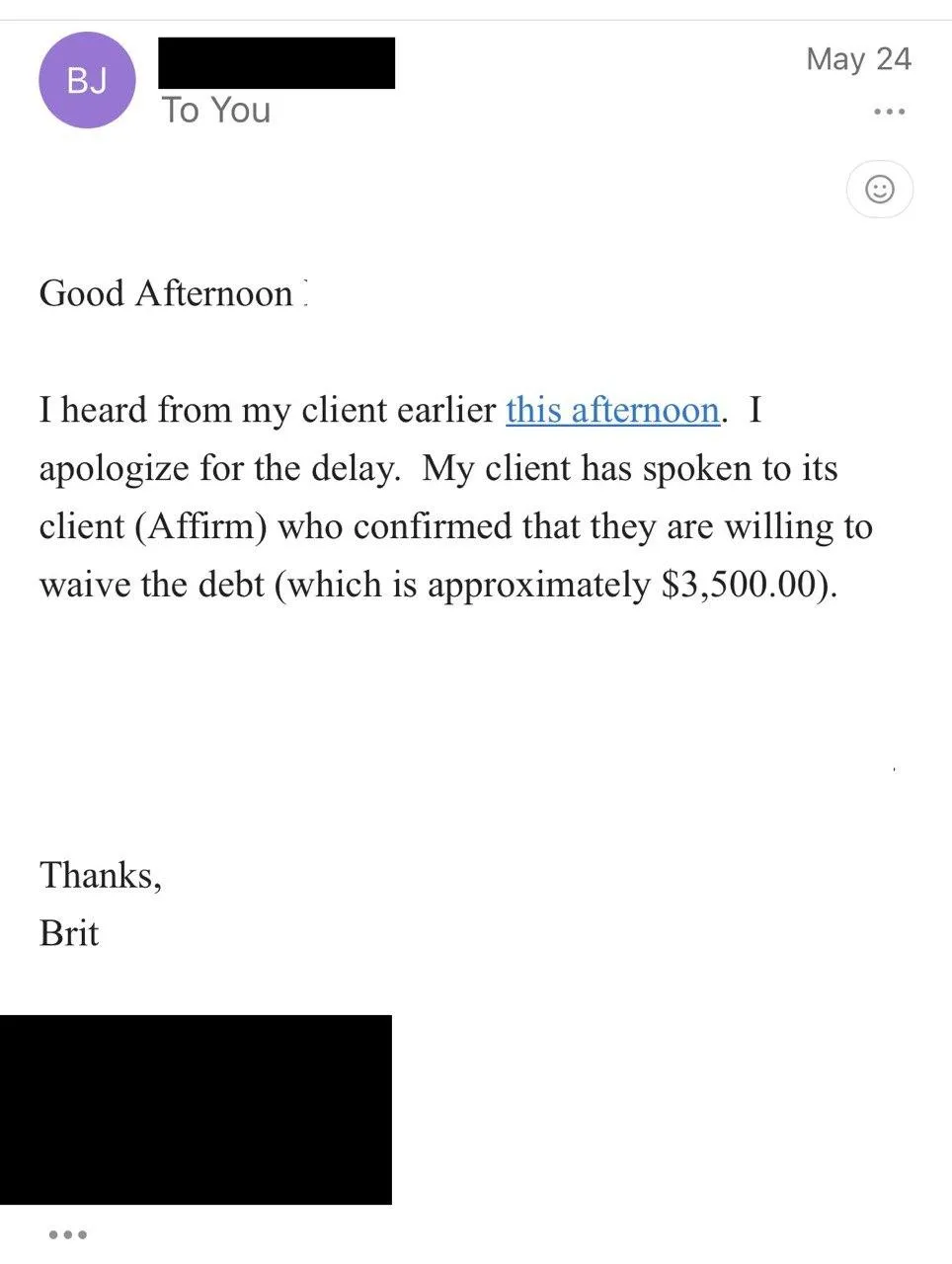 It’s possible to trap the debt collector and capture the violation within the first 30 days. Some cases can be within the day, others can be a bit longer depending on your situation. The debt collector usually settles in a short period however it is possible that they fight for a bit longer. You can always reach out to check for updates.